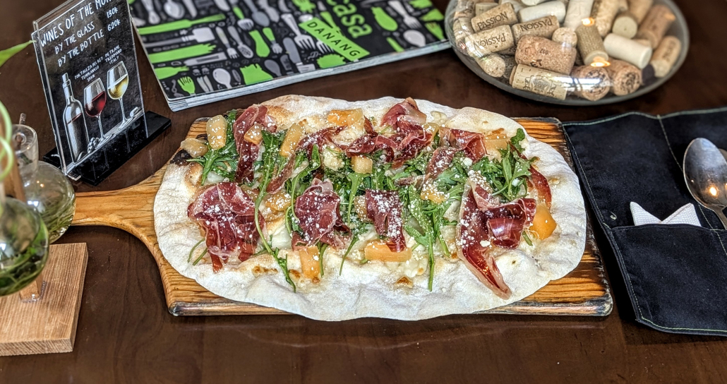 Musk melon, prosciutto, mozzarella, parmesan, rocket lettuce.
